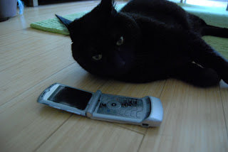 I planted a nanny cam in the living room the other day, and sure enough I caught Stussy ringing up my daytime minutes while I was out. Notice how cool and collected she is. When I told her she would have to stay inside for the next week, I only got a a soft purr of indifference for a reply. No sign of guilt. Not even an offer to reimburse me. She's been hiding out in the bathroom since the day of the bust. Probably up to no good in there, using up all my product. I've got some very fancy spa treatments she'd love to get her paws on.